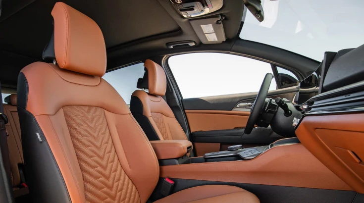 ومن الجانب، تظهر الخطوط الانسيابية التي تعزز من الأداء الهوائي وتمنح السيارة مظهرًا أطول وأكثر ثباتًا، خاصة مع قاعدة عجلات بطول 108.5 بوصة، بينما يبلغ طول السيارة 184.4 بوصة وعرضها 73.4 بوصة، وهي أبعاد مثالية توفر توازنًا بين الرحابة وسهولة المناورة داخل المدن.